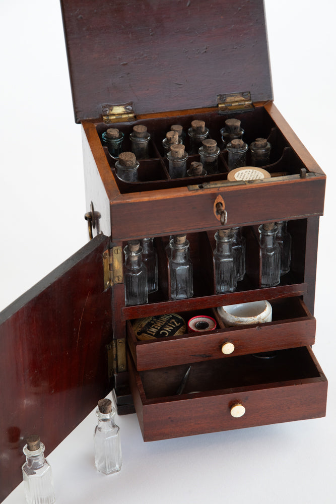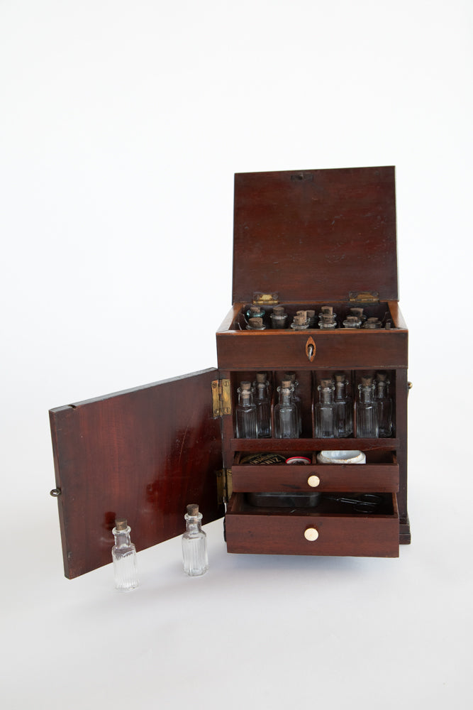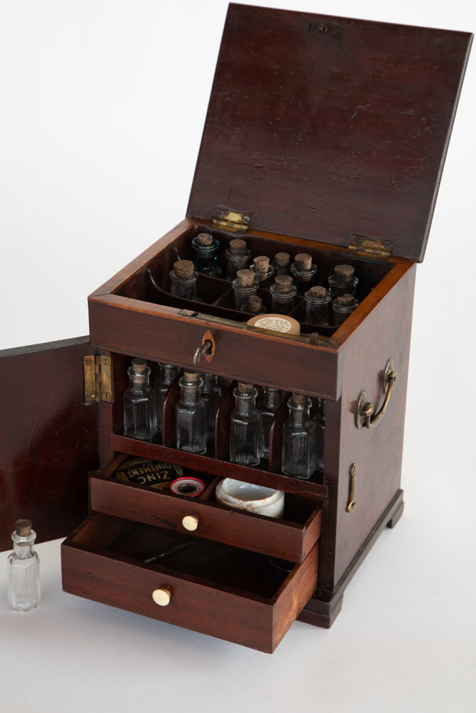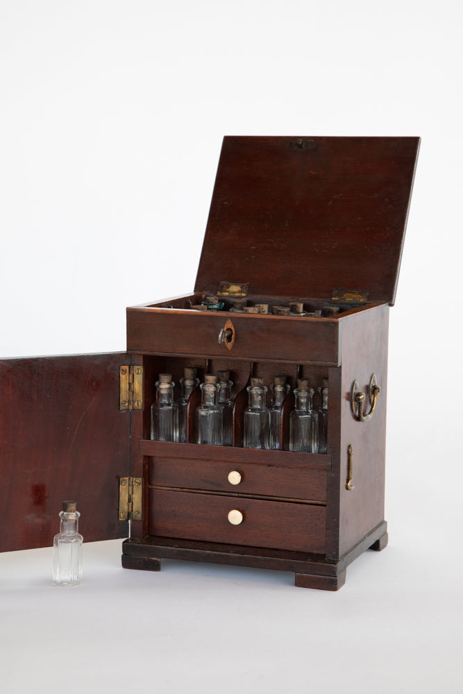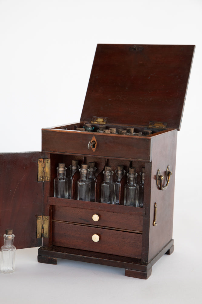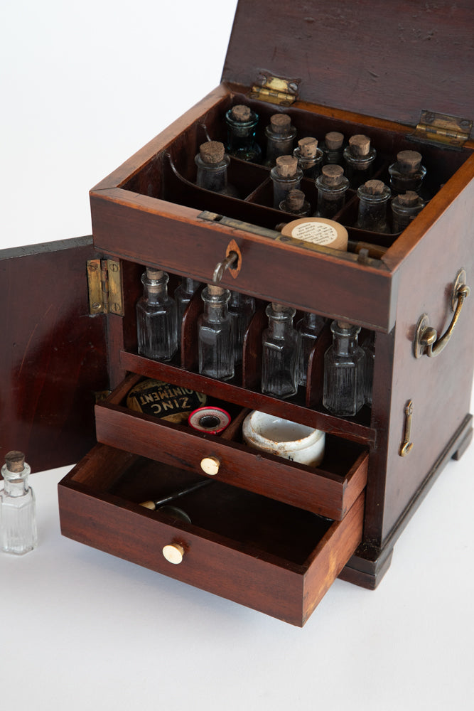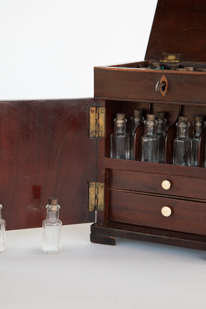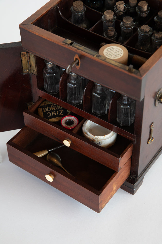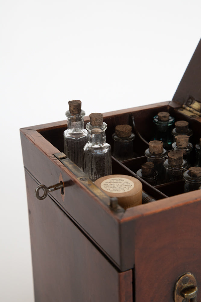 Our antique Apothecary Box will be complete your collection as it is in amazing condition with vintage bottles. Perfect for organizing your essentials or displaying your collection, this unique piece adds a touch of charm to any space.