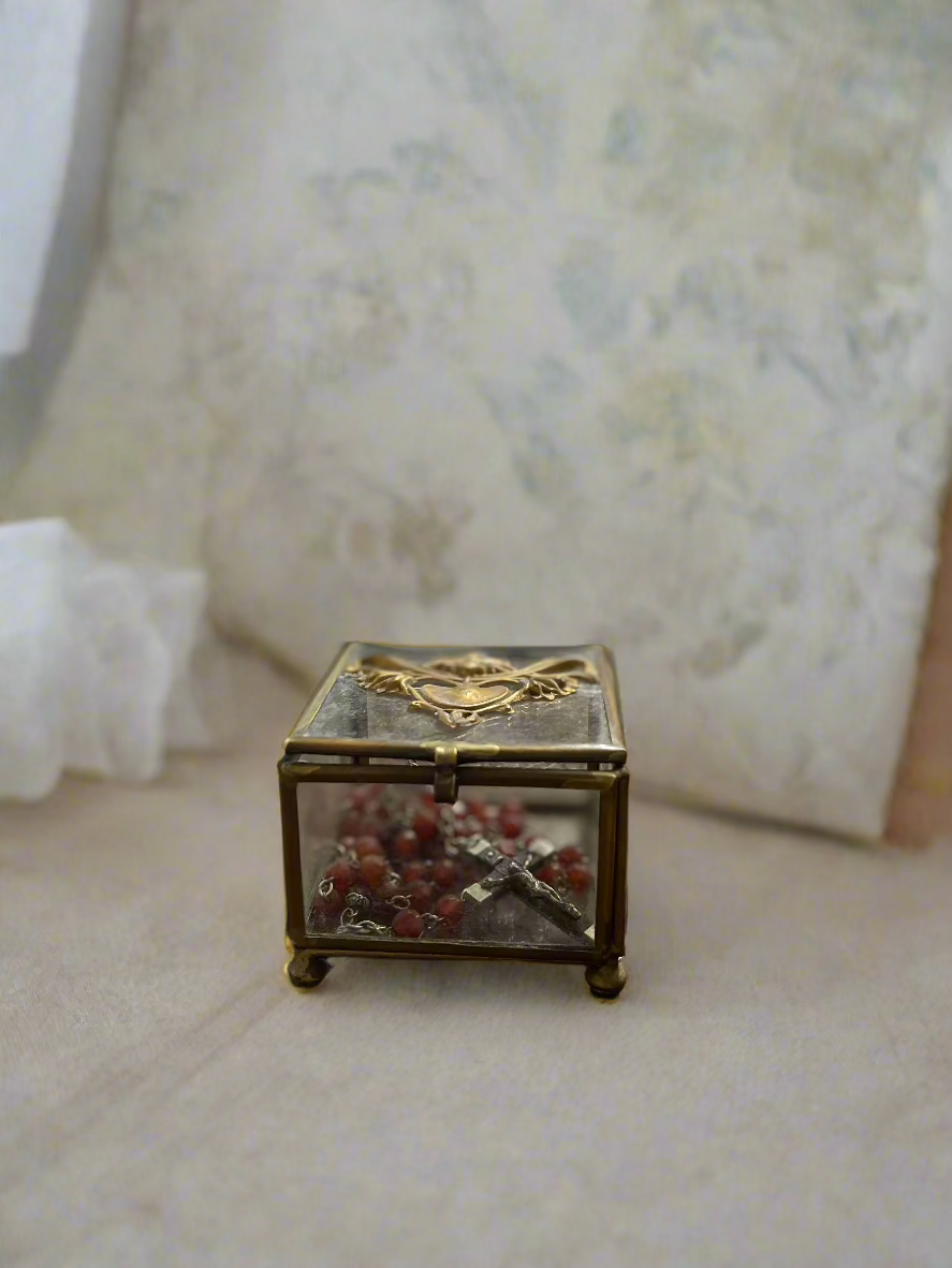 Inspire your faith every day with our Burgundy Beaded Rosary “Jeanne”. Engraved with the name “Jeanne” on the back, this beautifully crafted rosary comes in a small glass box, making it the perfect gift for a loved one. Find strength and peace through prayer with our elegant rosary.