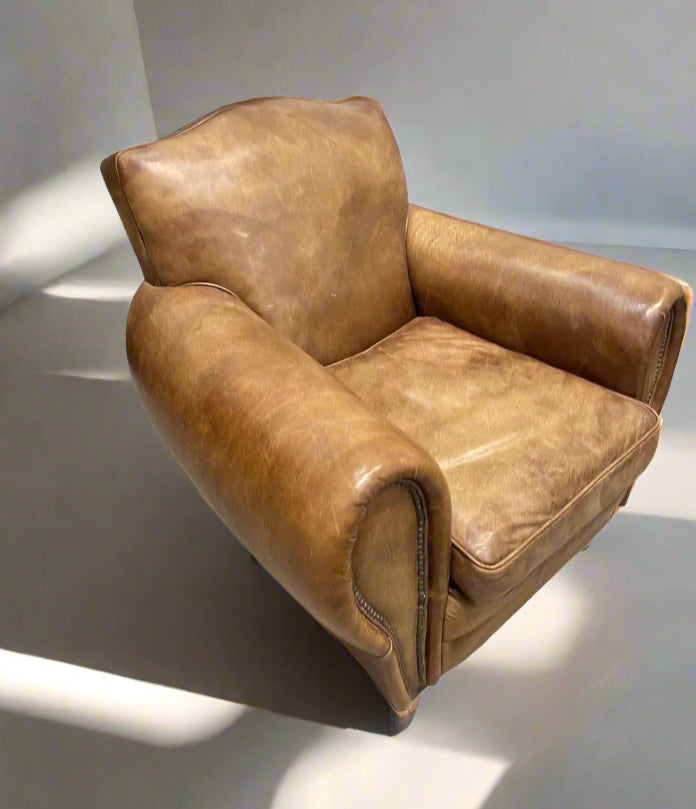 Unleash your creativity and elevate your décor with our Leather Club Chair - French MCM. Indulge in luxurious comfort with its generous dimensions of 37w x 33h x 40d and a seat depth of 23. The perfect blend of style and comfort, this chair boasts a seat height of 17 for optimum relaxation. Upgrade your living space with this must-have addition that exudes sophistication and charm.