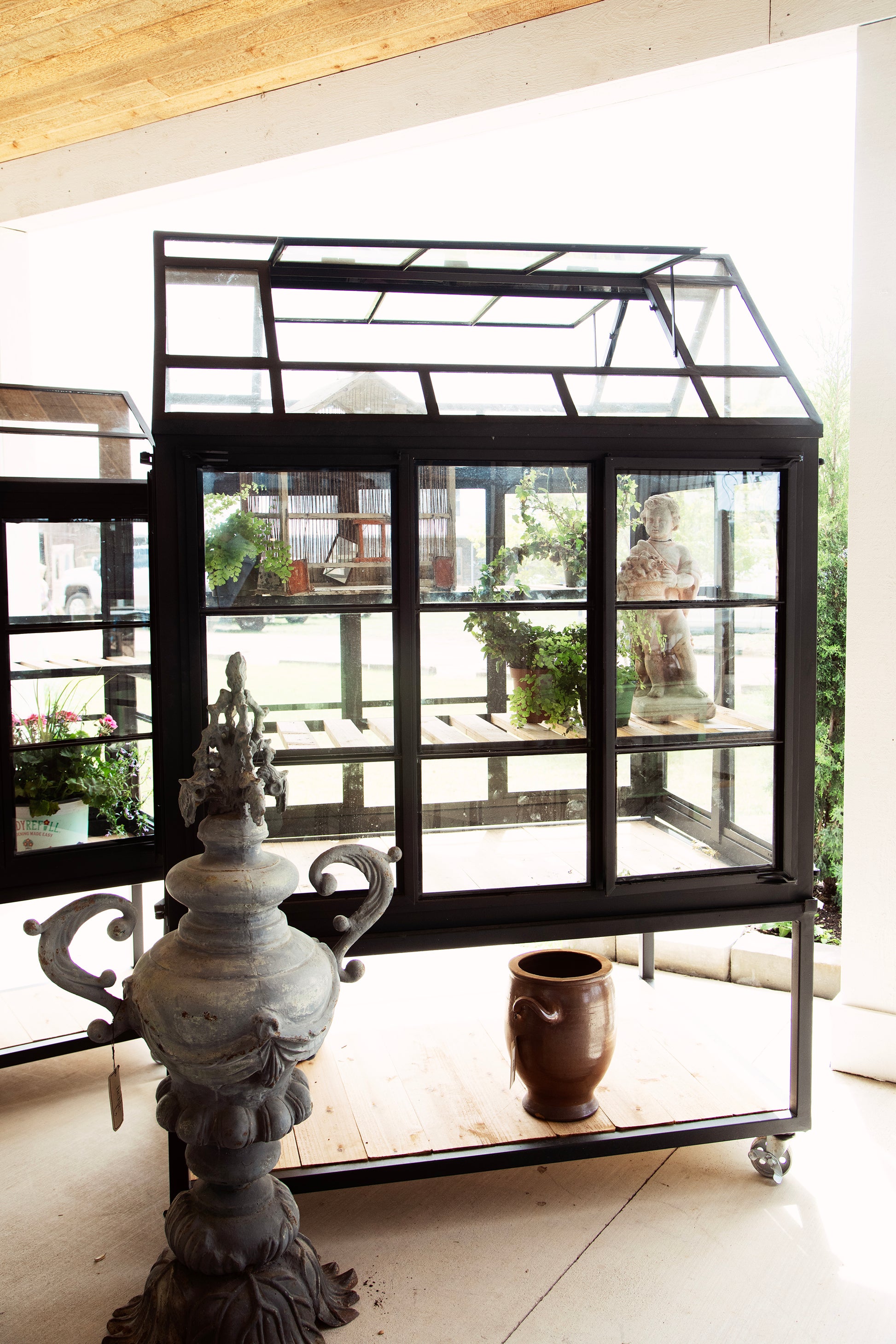 Introducing the "Metropolitan Retreat Greenhouse," where chic meets functionality in its deep charcoal frame, tailored for the urban farmhouse aesthetic. This model boasts three panels and a top that opens, creating an adaptable environment for your plants and statuary on its fresh cedar planks. Equipped with casters for unparalleled ease of movement, this greenhouse allows you to effortlessly adjust its position to suit your space or the changing seasons. Embrace the blend of rustic charm and contemporary design to elevate your urban gardening experience.