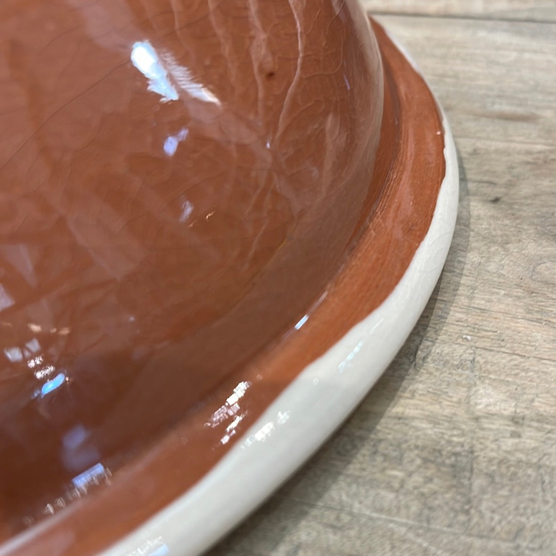 Made in Morocco. We recommend to hand-wash due to the porous nature of the terracotta. It is normal to see fine feathering cracks in the glaze.