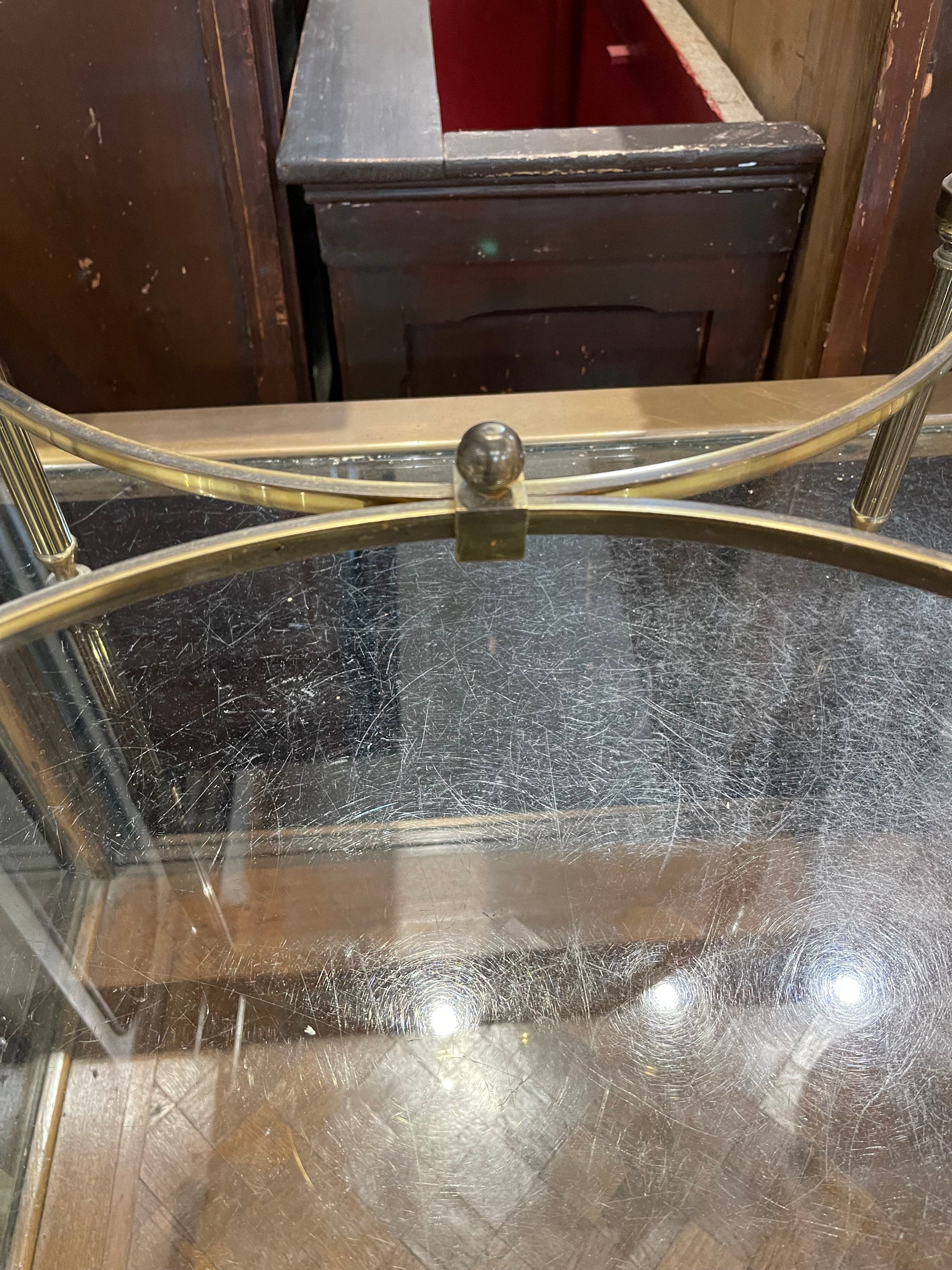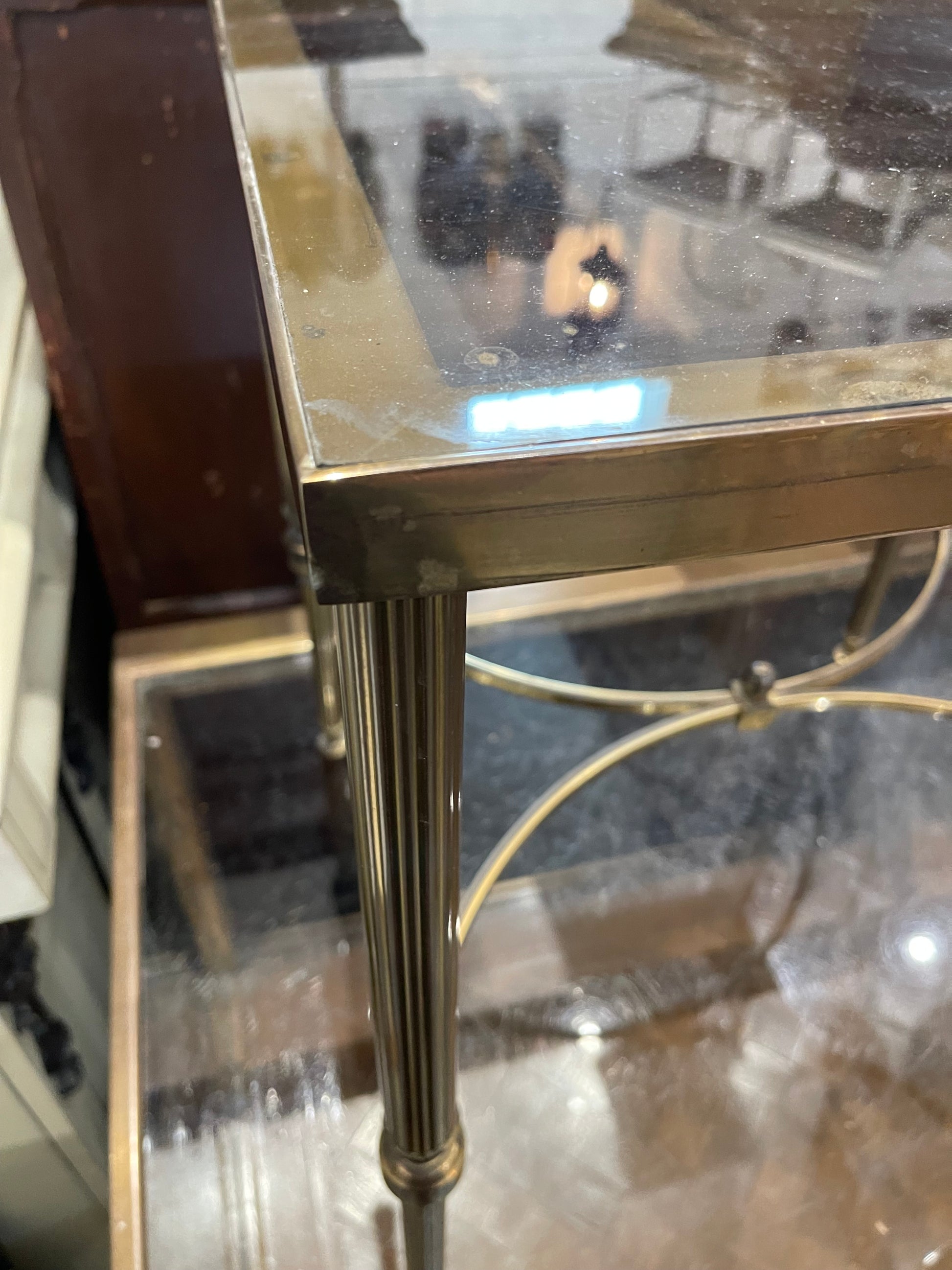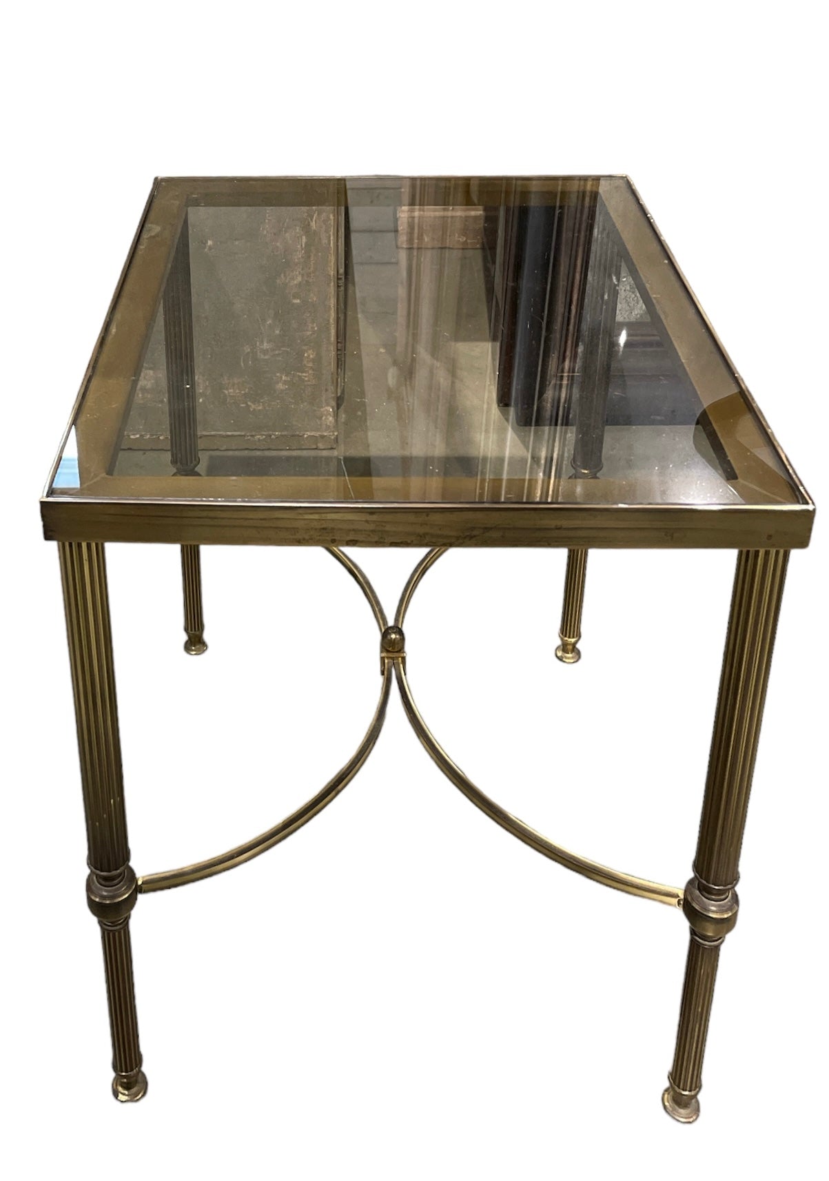This exquisite French brass and glass table, circa 1940, will add a touch of elegance to any room. The sleek design and high-quality materials make it a timeless piece of furniture. Perfect for entertaining guests or as a statement piece in your home. A must-have for any lover of vintage and luxury.