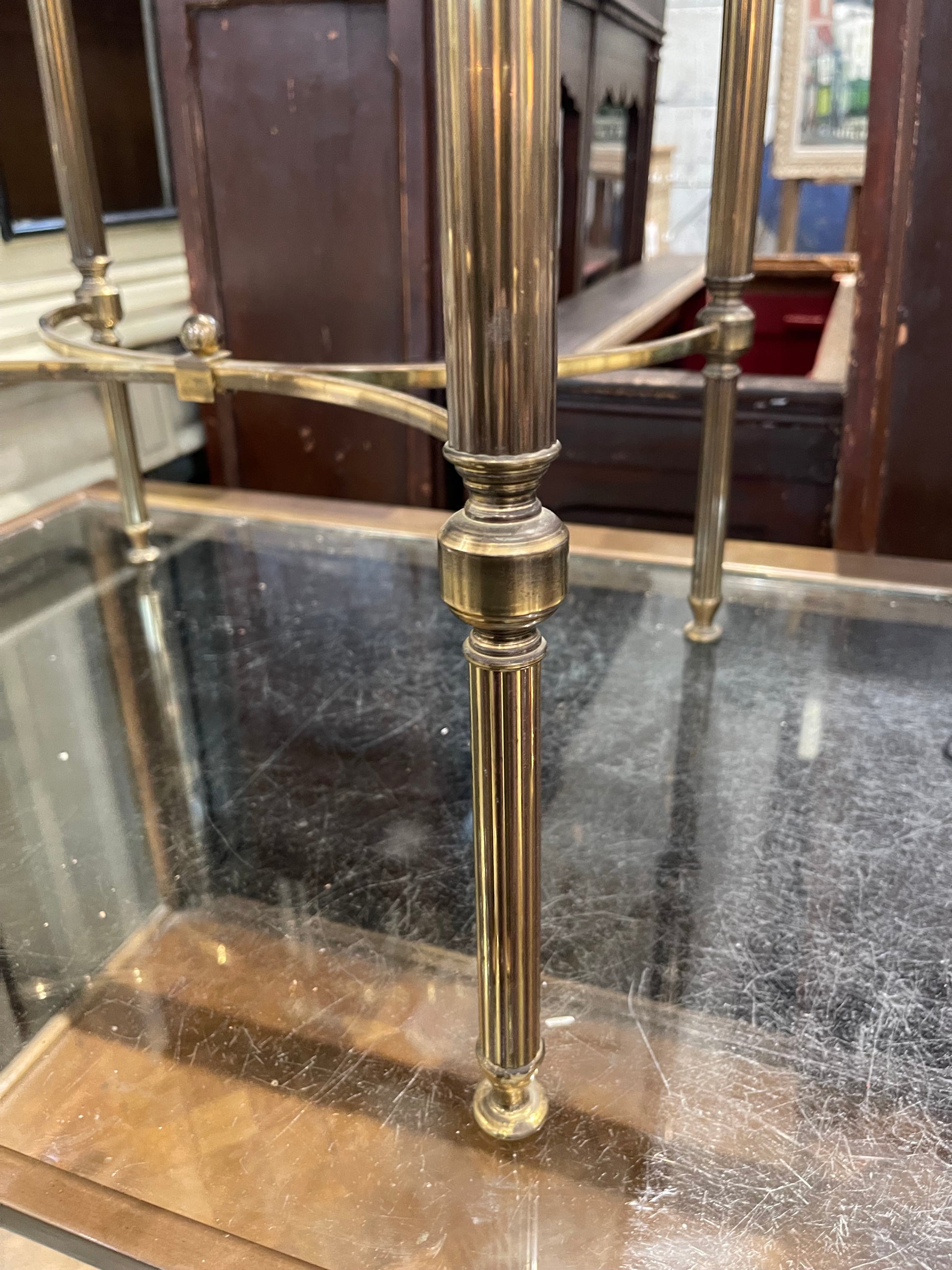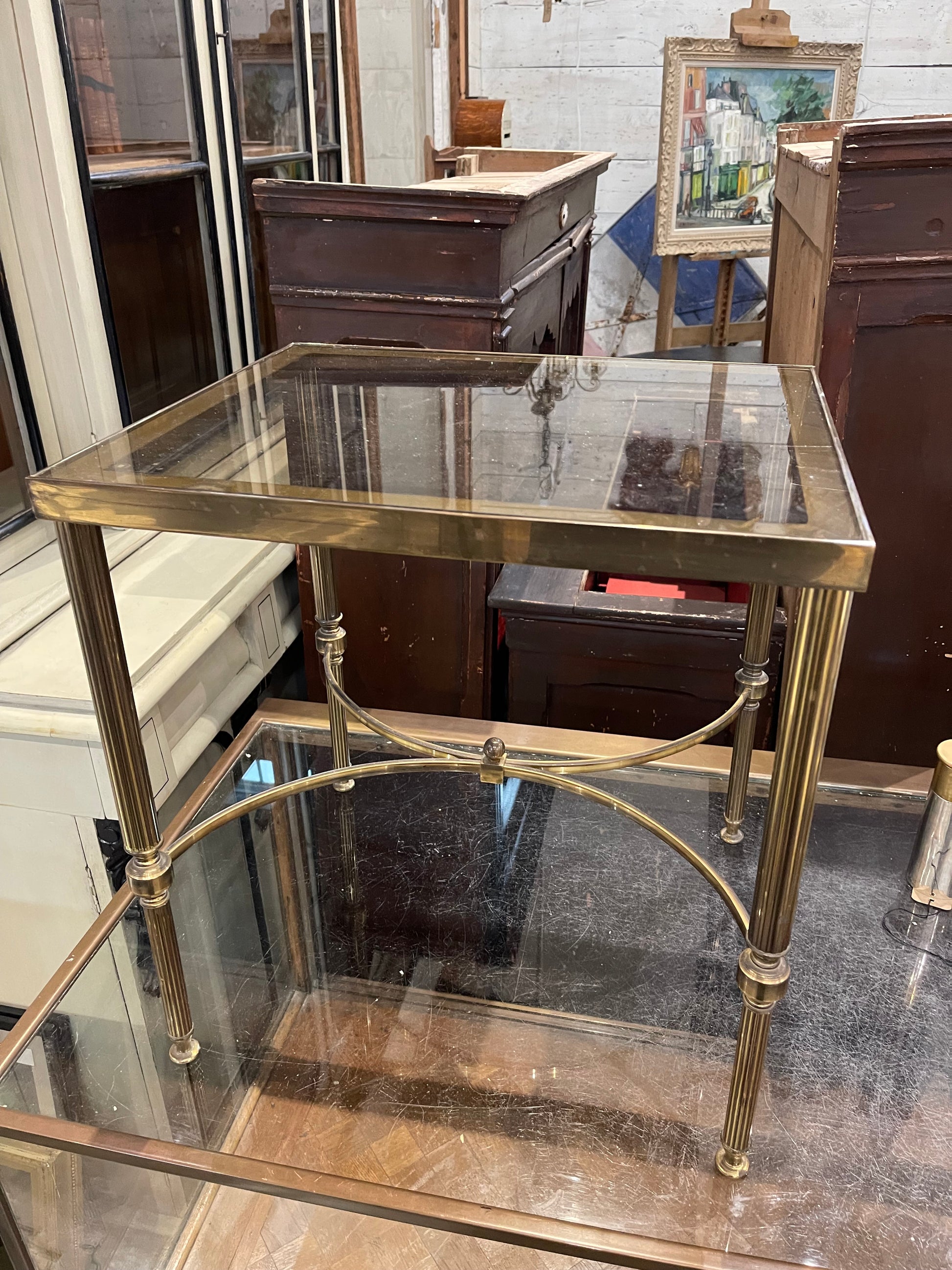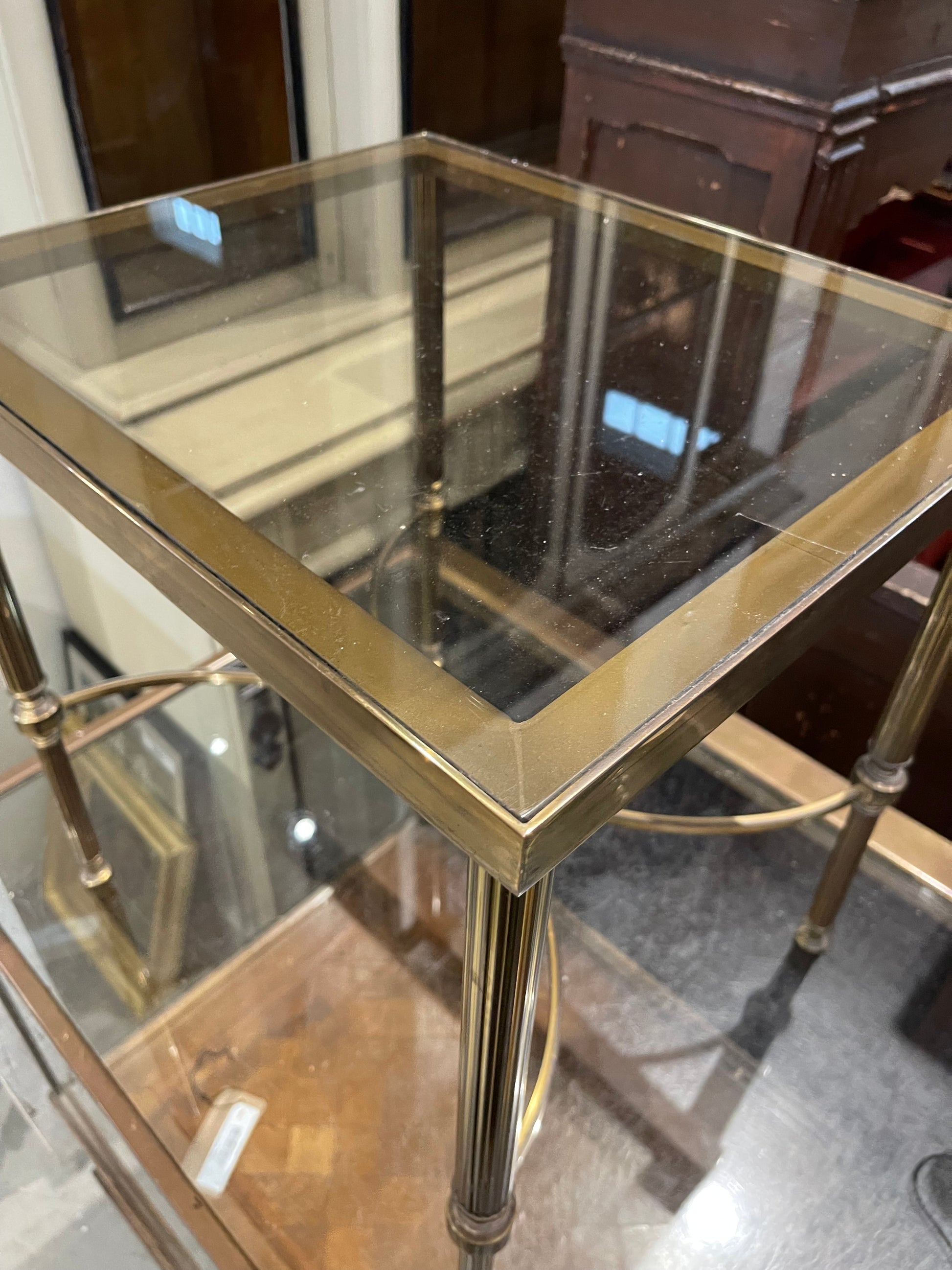 This exquisite French brass and glass table, circa 1940, will add a touch of elegance to any room. The sleek design and high-quality materials make it a timeless piece of furniture. Perfect for entertaining guests or as a statement piece in your home. A must-have for any lover of vintage and luxury.