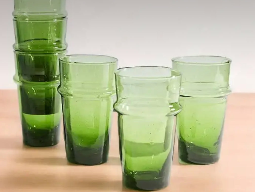 The sleek and simple design of these hand-blown cone-shaped glasses are a testament to the style and skill of the artisans who make them. Used for all types of beverages or as little vases to decorate each table setting, you will enjoy the feel of them in your hand as you toast the joys of the day. Sixes. We’re including six glasses - because whether it’s tea, water or wine, there is no need to drink alone. These little beauties can be paired with matching tall and short glasses.