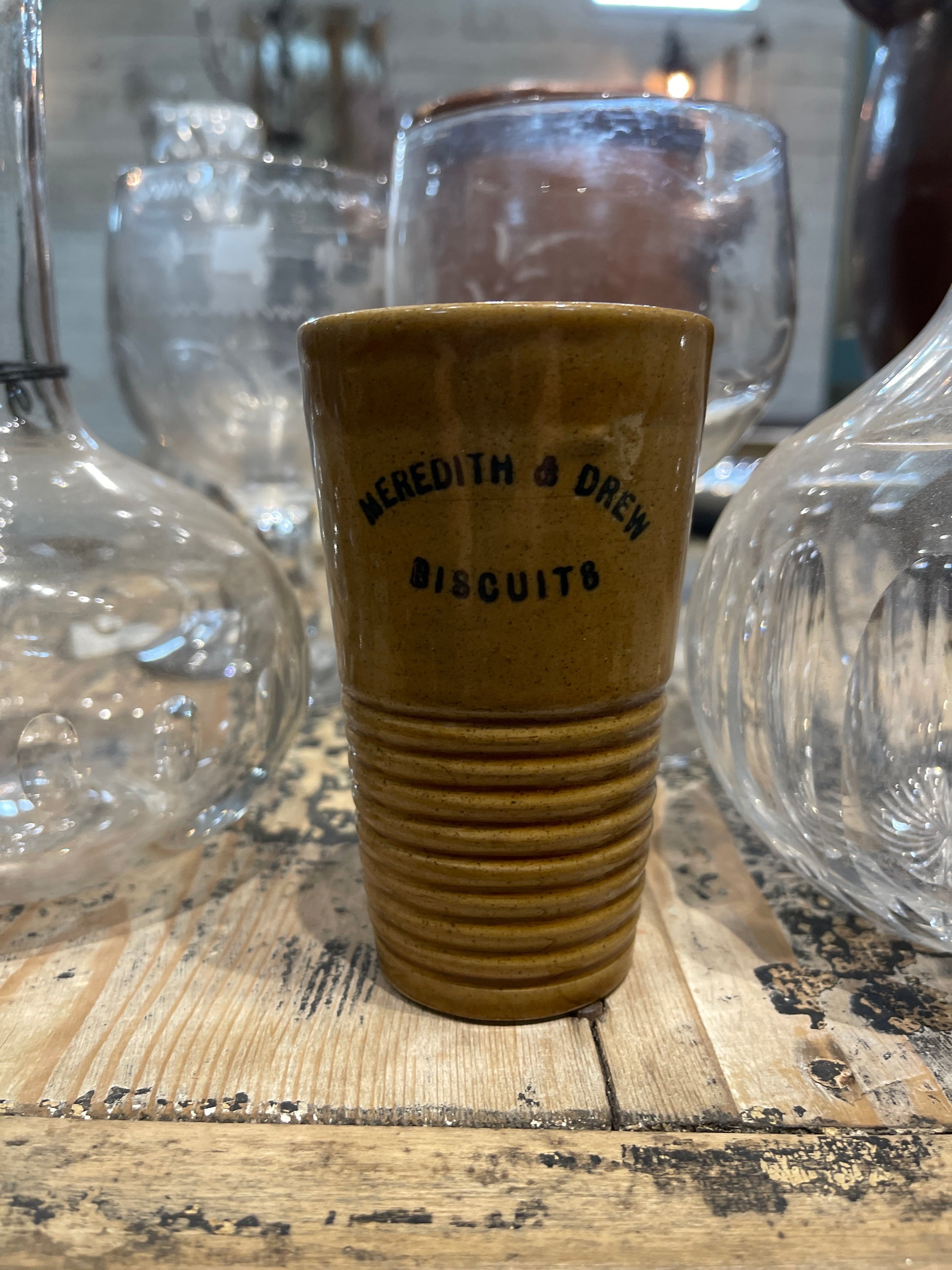 Add a touch of history to your home with this rare antique Meredith and Drew Biscuits advertising jar. Display its unique design and charm while also enjoying its functional storage capacity. A must-have for any vintage or antique collector!