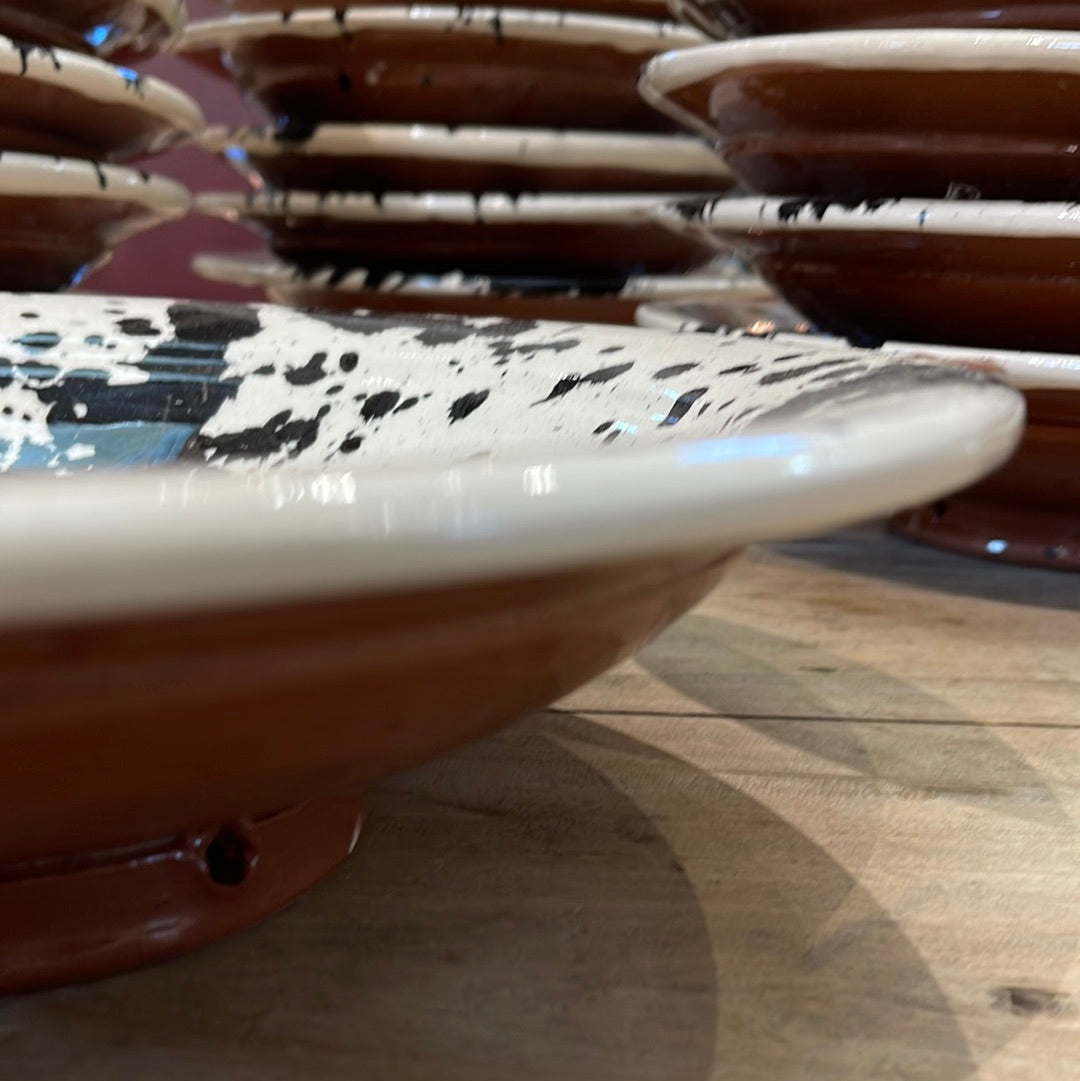 Made in Morocco. We recommend to hand-wash due to the porous nature of the terracotta. It is normal to see fine feathering cracks in the glaze.