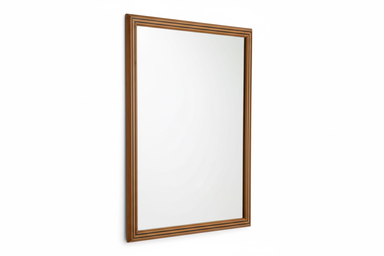 A refined beech dressing mirror featuring elegant dark wood inlay detailing. This substantial vertical mirror brings both function and decorative appeal to any bedroom or dressing area. The warm beech frame contrasts beautifully with the inlaid dark wood accents, creating visual interest while maintaining a timeless aesthetic. Ideal for vintage and antique collectors seeking quality craftsmanship and authentic period styling.